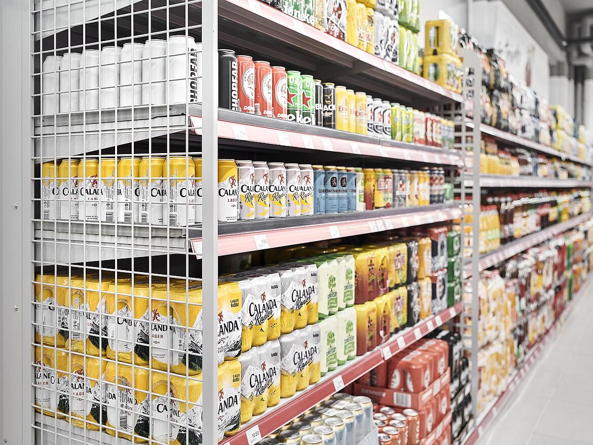 Noch ein Vorteil: Dank der einfachen Installationstechnik treten keine Beschädigungen an der Immobilie auf. Weder an den Wänden noch am Boden sind Befestigungen für das Ladenregal nötig. Kurzum: Dank einer intelligenten, modularen Bauweise aus Metall können Sie Ihr Geschäft um bis zu 80% schneller einrichten und eröffnen.