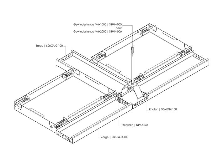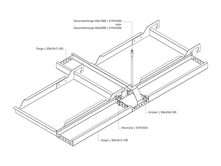 Das Knoten-Bandrastersystem HAAG 6 besitzt eine Unterkonstruktion aus längs- und querlaufenden Profilen, was ein symmetrisches Deckenbild erzeugt. Das Metalldeckensystem ermöglicht auch eine variable Raumaufteilung, indem verschiebbare Trennwände bei Bedarf an den parallel verlaufenden Bandrasterprofilen befestigt werden.
