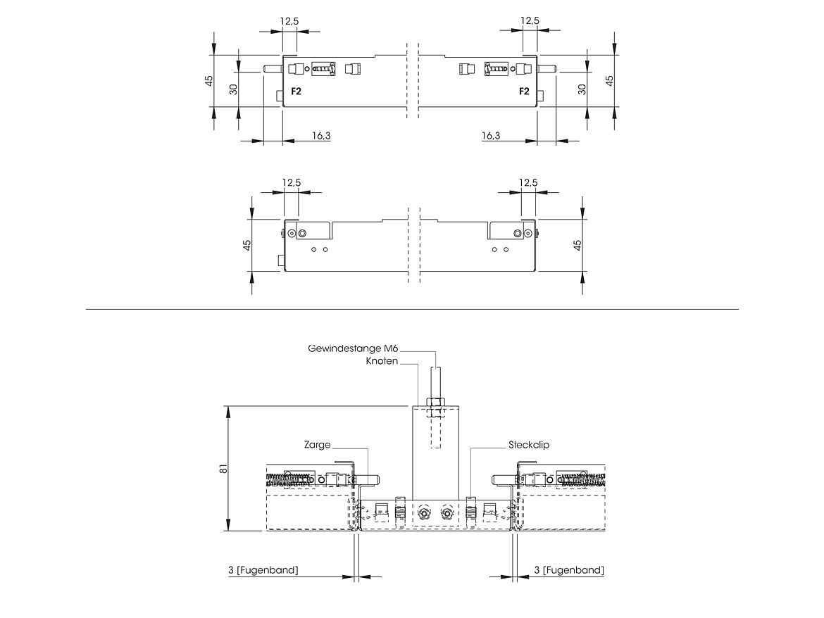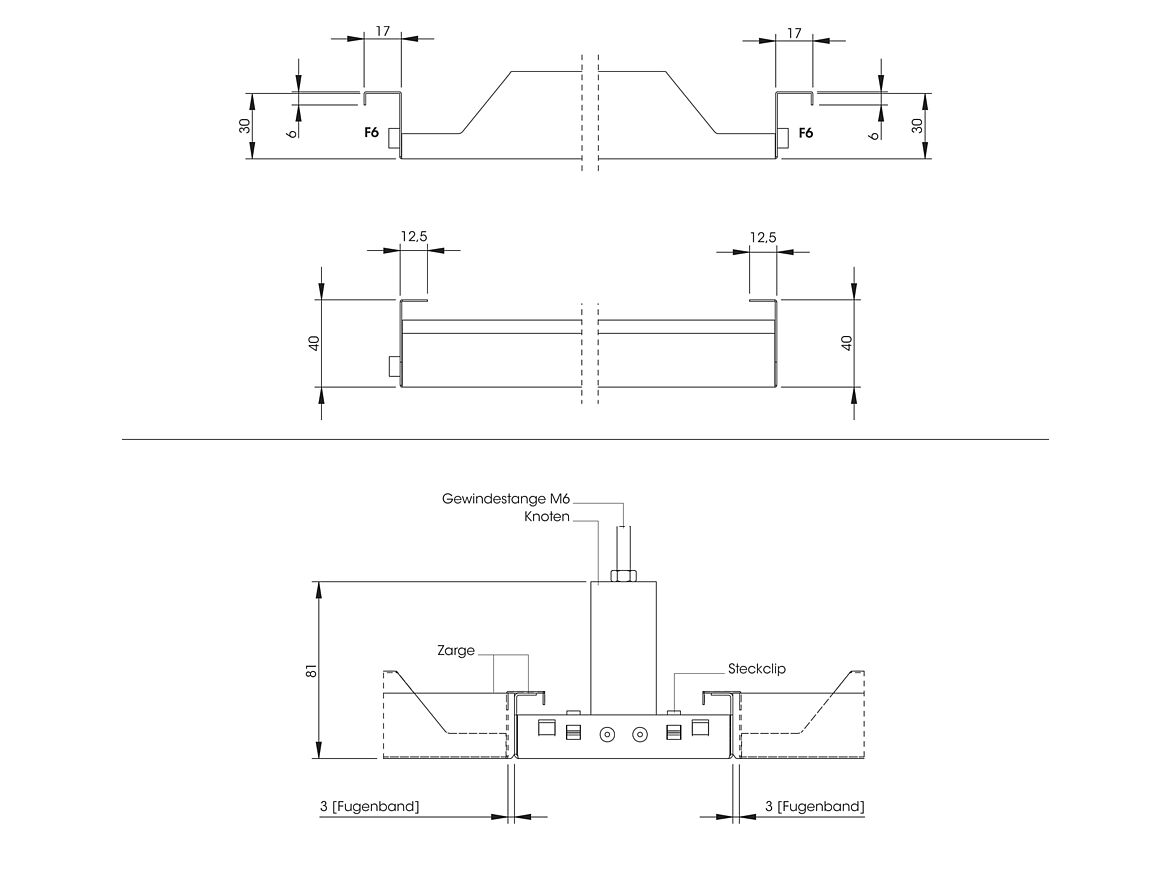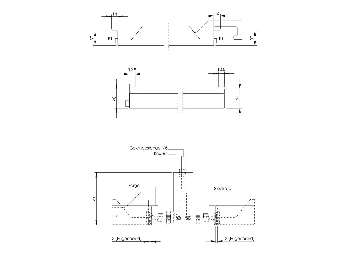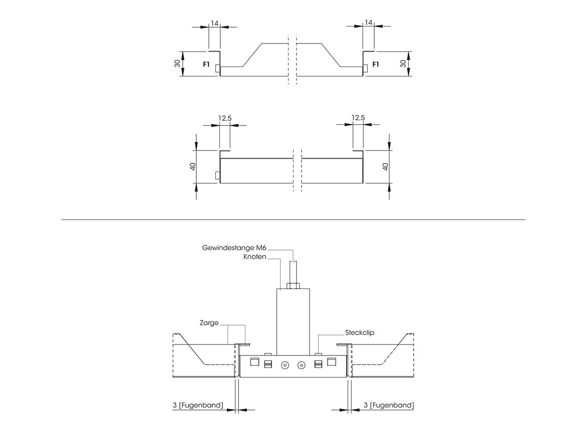 Breite: ≤ 900mm (Grössere Breiten sind nach Absprache möglich. Eventuell sind zusätzliche Massnahmen zur Minimierung des physikalisch bedingten Durchhangs notwendig.)
